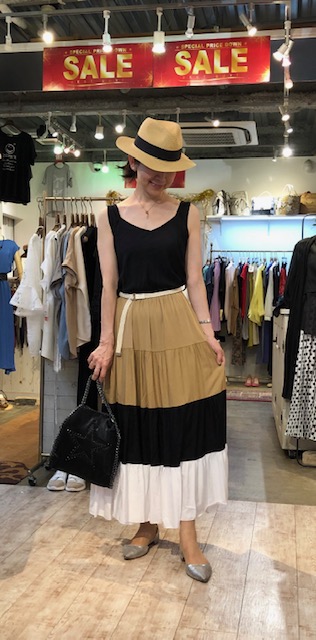ティアードスカートのワンピース💕SALE お洒落な配色ティアードスカートのワンピースがイタリアから到着しました💕🎉👍 インナーにタンクトップやTシャツを合わせて着れば、難なく着れますよん💕😃 秋になったら長袖トップスを合わせてスカートを楽しむのもGOOD🙌💕🤗 2019年7月19日