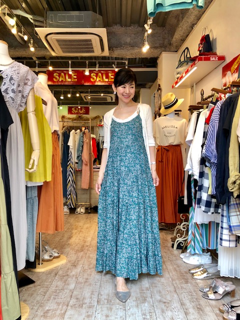 花柄ティアードワンピース 7700円💕🤗 レーヨン素材のさわやかなティアードワンピースはラスト一枚💕 大人カジュアルの上質な素材感も魅力💕 合わせるカーディガン達は、40〜50%オフで取り揃えております💕😍 インナーキャミソールもSALE販売中ですので無くなる前にゲットしてくださいねーー レースキャミソール 4900円→3920円💕 2019年7月21日