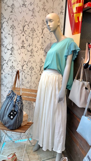 イタリア🇮🇹トップス 6230円💕 イタリアらしい綺麗なカラーがお洒落なデザイントップスがとってもお得になりました💕 白のスカートと合わせて爽やかに着こなしてみてはーー?こちらの白のスカートはコットンの裏地が付いているので、一枚で履いて透けませんよぉ〜💕お色違いは、黄緑、チャコールグレー、ネイビーがございます💕 足元はサンダルでもスニーカーでもバッチリです👌 スカート 7900円→6320円 2019年7月21日