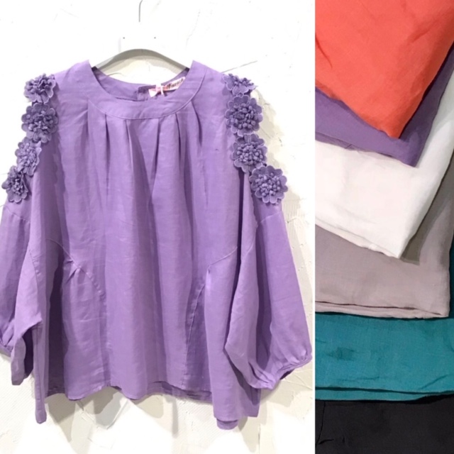 フラワーモチーフのブラウス💕6230円🎉 大人気のフラワーモチーフのブラウスに新型が出ましたっ💕💕💕 メーカーさん協賛でとってもお得なプライスを実現🎉😍🙌 お色は、パープル、ピンク、白、黒、グレー、グリーンの6カラーで到着しました💕 綿麻の素材で、丸洗い出来てノーアイロンで、毎日ささっと着られます⭐️👌 2019年7月26日