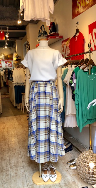 半袖ブラウス 4830円💕 大人気の袖デザインのブラウスが再入荷💕しましたよぉ〜💕シワにならないサラッと素材で、忙しい貴女にぴったりの万能アイテムです💕😃マドラスチェックのコットンスカートで爽やかな夏のコーディネートにしてみました☘️ チェックスカート 5530円💕 2019年7月26日