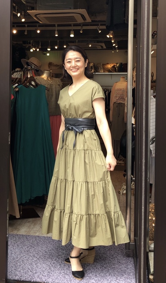 ティアードワンピース 9800円💕 大人気のコットン素材のティアードワンピースはこちらがラストとなりました💕🎉🙌 とっても着やすくて、超特価です 本革ベルト 5900円☘️ サンダル 9600円💕 2019年7月28日