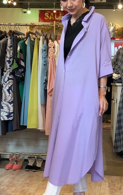 パープルのシャツワンピ💕11060円💕 とっても軽ーい爽やかなシャツワンピースが到着しました💕🎉😍お写真のラベンダーと、ベージュ、オフホワイトの3カラーで展開しております☘️上質な生地のアイテムは、洗ってもヨレないから、お手入れの手間もありません⭐️⭐️⭐️ 30%オフととってもお買い得ですので、これからに季節にぜひ一枚お持ちになると便利ですよーーー シャツワンピース 15800円→11060円😍 2019年8月2日