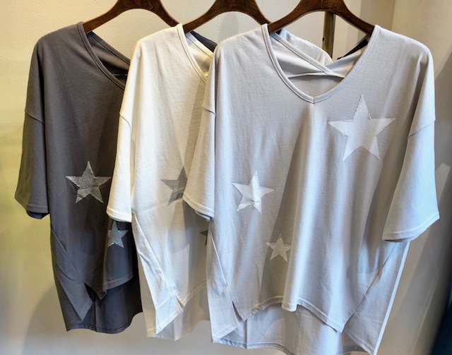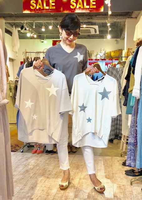 星のコットンTシャツ 30%オフ💕 しなやかなコットン素材の星デザインTシャツが入荷しております💕 新作ですが30%オフで販売させて頂きます💕 大変お買い得ですのでぜひ店頭に見にいらしてくださいませ 星のTシャツ 8900円→6230円💕 2019年8月2日