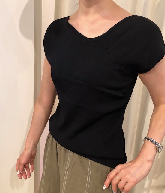 Vネックデザインニット 30%オフ🎉🎉🎉 サラサラっとした着心地が嬉しいサマーニットが到着しました💕😃 一足お先に秋色カラーの、ブラウン、ベージュ、ブラックの3カラーです Vネックデザインニット 7900円→5530円 2019年8月3日
