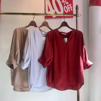 秋色のブラウス 4900円💕 涼しいレーヨン素材の秋色のブラウスが好評です💕🎉ブリックレッド、ライトグレー、ベージュの3カラーです 一足お先に秋色を楽しみたい方にお薦めです😍👌 本日も新作が50点ほど入荷いたします。ご旅行前の新しいお洋服を探しにいらしてくださいませねーー🙌 リコノは8月13.14.15を改装の為お休み頂きます。16日より通常営業を致します。ご不便をおかけ致しますが何卒よろしくお願い申し上げます。 2019年8月9日