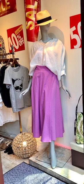 青みピンクの綿麻スカート 8400円💕 スッキリしたシルエットと素材感で人気のスカートです💕オフ白のリネンのブラウスと合わせて思いっきり爽やかにいかがでしょう? ブラウスのふんわりしたシルエットが今っぽくてステキですーーー リネンブラウス 14000円→8400円💕 2019年8月11日