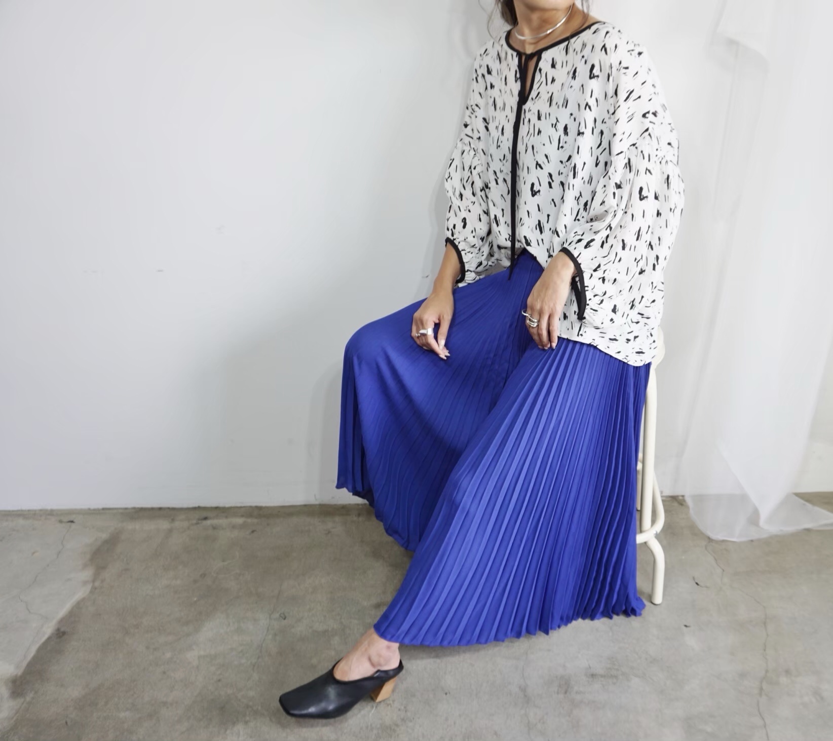 カラープリーツワイドパンツ 9800円💕 大人気のカラープリーツワイドパンツのロイヤルブルーが到着しております💕😃 サラッサラーの着心地で、ホームクリーニングOKの大人気アイテムです💕 お色違いは、チャコールグレー、グレージュ、ブラック、レオパードプリントなどがございますよぉ〜💕🎉 2019年8月15日