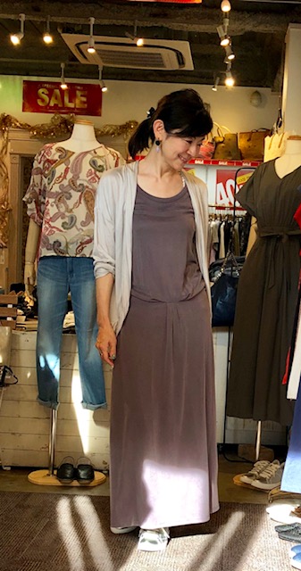 タンクワンピース 6230円💕💕💕 引き続き大人気のタンクトップワンピースが最終入荷いたしました💕😃 モカブラウン、ネイビー、カーキの3カラーとなっております。まだまだ大活躍しますので、お色違いなどいかがでしょう? 合わせた卵カーディガンもお写真のライトグレーの他に、チャコールグレー、キャメル、ダークブルーの4カラーで揃いましたっ💕 卵カーディガン 4900円💕 こちらはこの週末 ブログを見てご来店のお客様に 10%オフで販売させて頂きますーー お会計時にスタッフにブログをご提示くださいませねー💕💕💕 2019年8月16日
