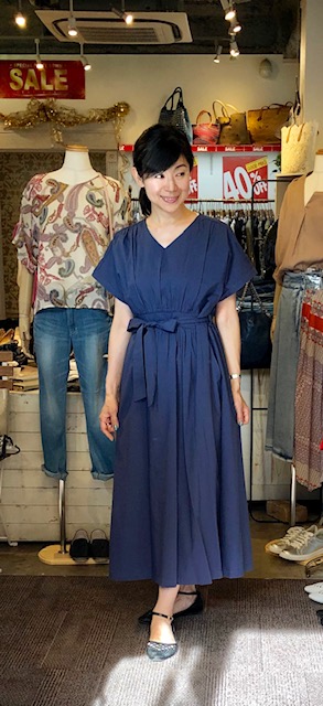 半袖ワンピース ネイビー💕9800円 秋一番の半袖ワンピースを特別価格で販売いたします💕お素材は、コットン、テンセル、レーヨンの混紡でしなやかで軽い着心地です⭐️裏が付いていてそのまま一枚でお召しいただけます💕お色違いはカーキとなります。 残暑が厳しいので、これから大活躍ですよぉ〜💕☘️各一枚で入荷しました ワンピース 14000円→9800円 サンダル 9000円 2019年8月17日
