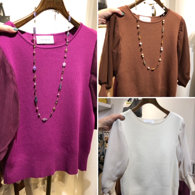 お袖がチュールのデザインニット 6900円💕 早くも大人気の5分袖ニットが入荷して参りました💕😍 ひんやりとしなやかな着心地なので、今から直ぐに着れそうです💕 お写真の他にブラックがございます 2019年8月20日