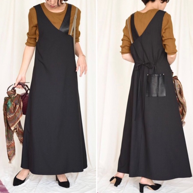 デザインジャンバースカート💕11800円 今期トレンドのジャンバースカートが到着しました💕カットソーはもちろん、スタンドのブラウスやニットなど着まわしは自由自在です💕 1着是非いかがでしょうーーー? 小柄な方でも着られるようにウェストに絞りが付いております。 2019年9月4日