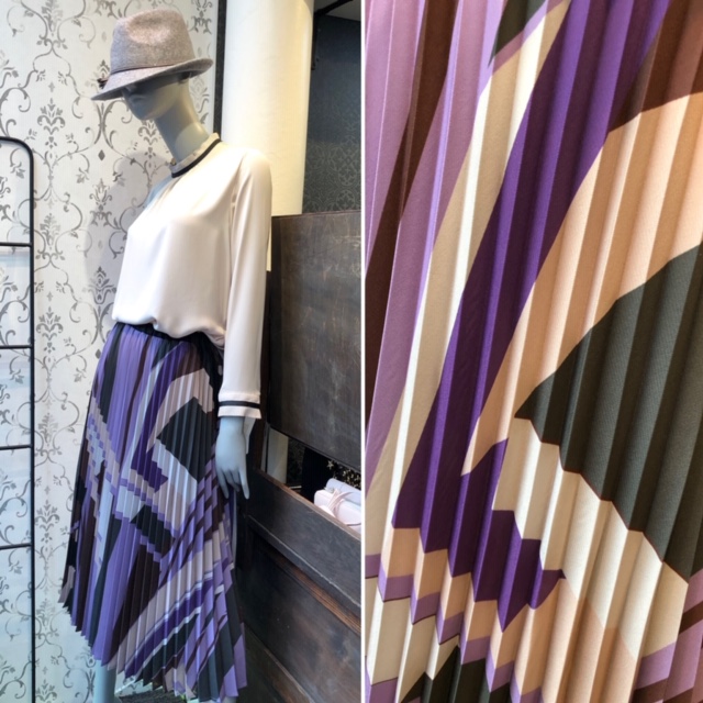 プリーツスカート💕 お洒落なプリントのプリーツスカートが入荷しました💕こんな綺麗なプリントはなかなか見つかりませんので、気になる方はぜひお早めにお越しください😃🙌 プリントプリーツスカート💕 14000円💕 スタンドブラウス 11000円💕 2019年9月7日