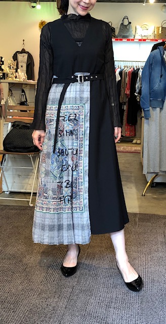 プリーツ切り替えワンピース 17800円💕 オリジナルのペイズリープリントに個性が光るワンピースが到着いたしました💕 インナーにチュールのハイネックを合わせて秋らしいコーデにしてみました💕 ジャンパースカートはインナー次第で春先までずっと使えるアイテムなので、一枚あると便利ですよぉ〜💕 株式会社リコノクローシェ 山崎範子 2019年9月9日