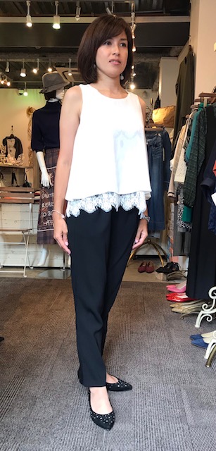 レーストップスのセットアップ💕19800円 裾にレースを配置したデザイントップスと楽チンテーパードパンツのセットアップが到着しました💕 上下バラバラに着られるので、とっても使いやすいセットアップです🙌🎉 ホームクリーニングして、シワにならない素材も◎💕 2019年9月9日