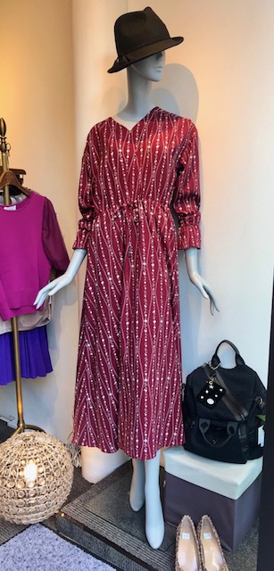花柄ワンピース 💕 ダークレッド💕 シックなダークレッドの小花プリントのワンピースが到着しました💕 落ち感のあるポリエステル生地なので、ストンと着られて着痩せ効果もバッチリ👌 お色はブラックもございます💕 ワンピース 15800円💕 2019年9月9日