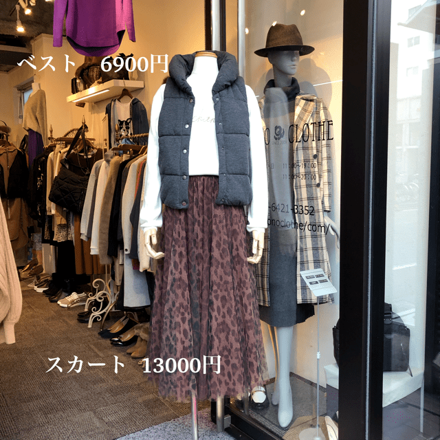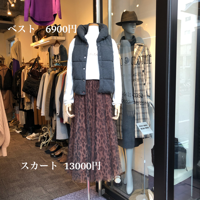 レオパードチュールスカート💕 大人気のレオパードのチュールスカートを中綿ベストでカジュアルにスタイリングしてみました💕 コンパクトなベストを着ることで、スカート のボリュームとの相性はバッチリ👍 スッキリとしたシルエットを実現します ベストはブラックもございます💕 今週はニットもスカートも10型以上で入荷しております💕 掘り出し物見つけにいらして下さいーーー😃🙌 2019年10月29日
