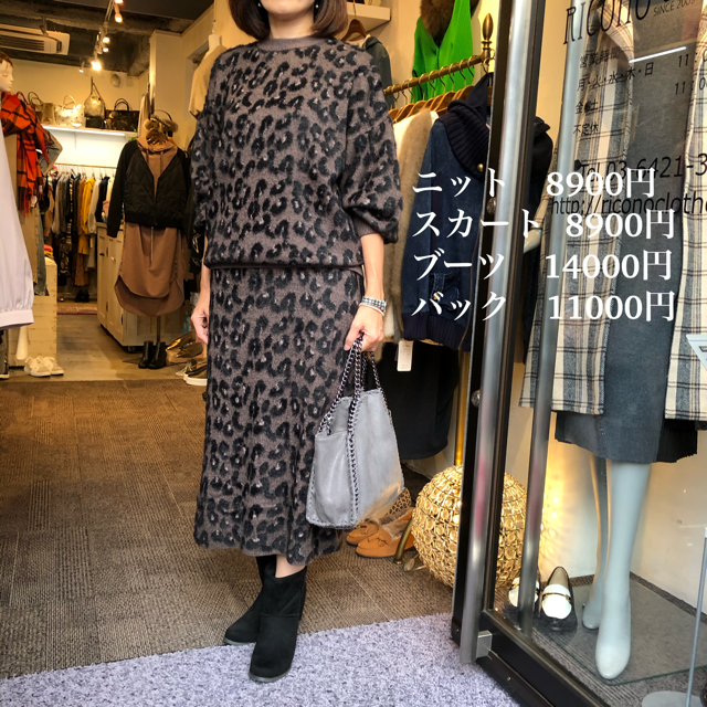 レオパードセットアップ💕 肌触りがサラサラのレオパードニットとお揃いのスカートのコーディネートです💕 単品売りなので、どちらか一方だけをゲットするのもあり👍 スカートはヒップラインを拾わないのが嬉しい😍⭐️⭐️⭐️ 今年レオパードをぜひ一着いかがでしょう? お手頃なお値段も魅力的です👍 お色違いはグレージュがございます😃 2019年10月29日