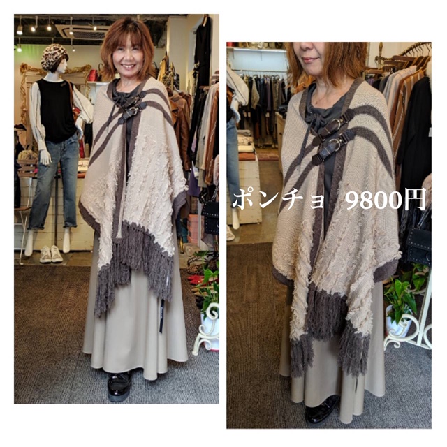 ニットポンチョ 9800円💕 ベージュ❎ブラウンの配色が素敵なニットポンチョです💕 お色違いはブラック❎ボルドーがございます💕 この週末は30アイテム以上の新作が入荷しております💕秋の新作トップスなど掘り出し物を見にいらしてくださいませーーー🙌 2019年10月4日