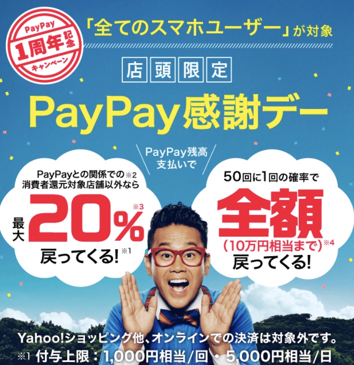 明日はPayPayで20%キャッシュバック💕 明日はPayPay感謝デーで、お買い上げ金額の20パーセントがキャッシュバックされます💕 更にーーーっ50回に1回は全額が戻ってくるという、大変お得なキャンペーンです💕 ぜひこのチャンスを生かしてくださいませーーー💕😃🎉🙌 2019年10月4日