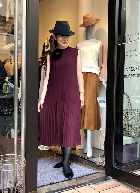 プリーツシフォンワンピース 9800円💕 大人気のプリーツシフォンワンピースが再入荷致しました💕😃 スッキリと一枚で着られるデザインが人気の秘密🎉😍ざっくりしたニットを合わせても素敵です 2019年10月6日