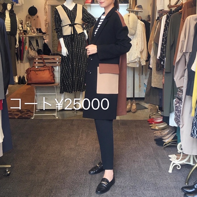 コート25000円💕 ブラウンとブラックの配色が、シンプルながらもモードな雰囲気を感じさせてくれるコートです😊💓 ワイドパンツやタイトスカートなどに合わせても素敵に着ていただけますよ😍 2019年10月11日