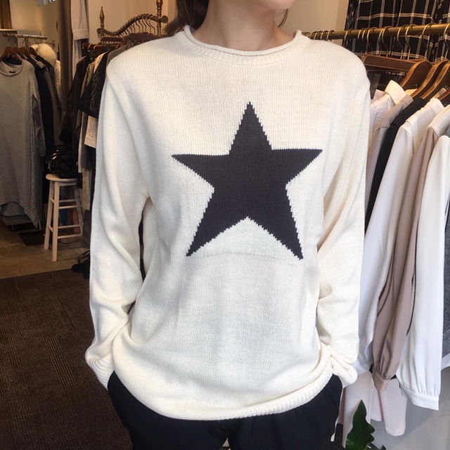 ニット4900円💕 薄手で着やすく、今の時期から着ていただけるニットです😊 星のデザインがコーデに遊び心を加えてくれます⭐️ 一枚で着ても、ジャケットなどのインナーにしても素敵ですよ😊💓 2019年10月15日