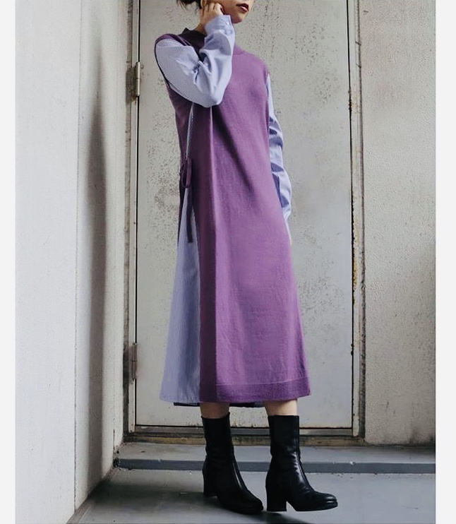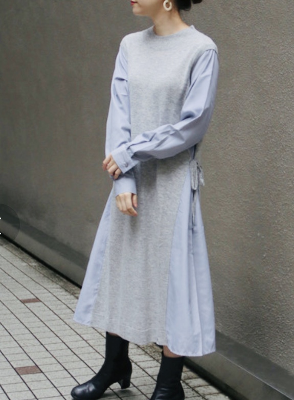 配色ワンピース 7900円💕 ニットとストライプのシャツ生地をドッキングしたおしゃれなワンピースが明日入荷致します💕 お写真のブラックの他に、グレーとラベンダーの3カラーとなっております💕 ニット素材も軽く薄手なので、今から春先まで大活躍しそうです👍 2019年10月18日