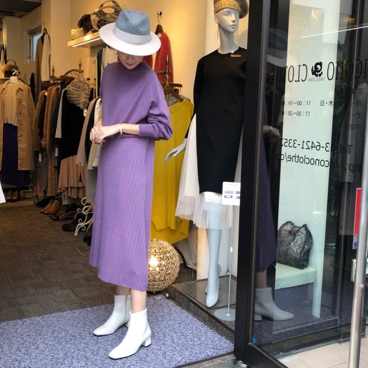 ワンピース9800円💕 とても綺麗なパープルの2Pワンピースのご紹介です💓 薄手のニットがセットになっており、重ね着をしても肩がけしていただいても素敵です✨ パンプスやブーツを合わせるととてもエレガントですよ😊 色々な組み合わせが楽しめます💕 2019年10月21日