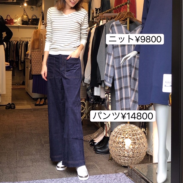 ニット9800円💕パンツ14800円💕 シンプルニットとパンツのご紹介です😊✨ 今の時期大活躍する薄手ニット。 一枚持っておくととっても便利ですよ😊💓 ニットはボーダーの他に白もございます✨ パンツは、ワイドパンツですがとっても軽くて動きやすくてオススメです😊✨ 2019年10月21日
