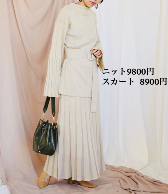 セットアップ アイボリー💕 こちらがアイボリーカラーとなります💕 ノーブルな雰囲気がたまりませんーーー スカートのニットプリーツ部分にラメが入っていて、歩く度にラメが揺れて素敵なのです💕 今年はニットのセットアップをぜひ一着いかがでしょうか? とってもオススメです👌 2019年10月21日