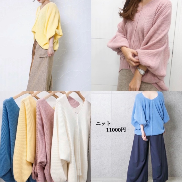 ドレープニット 11000円💕 日本製のオーバーサイズニットです💕 独特なドレープ感がお洒落心を刺激される一枚😍 ボリューム袖ですが、軽めなのでコートも着られますよん サックスブルー 、レモンイエロー、モーブピンクの3カラーで展開しております💕 2019年11月1日