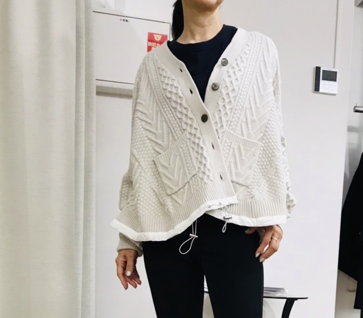 ケーブルニットカーディガン 17800円💕 一枚で存在感のあるニットカーディガン が到着しました💕 裾のテーピングでボリュームを変えられるので、Aラインからコクーンシルエットに変化できます⭐️ ざっくりとした編み方ですが、とても軽いのが特徴です💕 ブラック、ライトグレー、オフホワイト、で展開しております💕 ニットカーディガン 17800円 2019年11月1日
