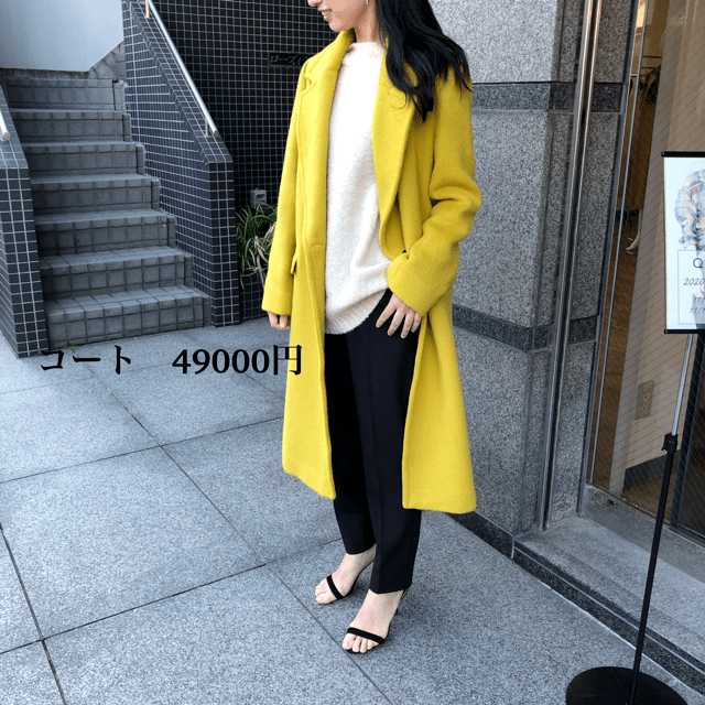 ウールコート イエロー💕 イタリア生地の🇮🇹上質な素材を使ったウールコートが日曜日に入荷します💕 お写真のイエローの他に、ベージュ、ブラック、アイボリーがございます💕 綺麗めのコートが欲しい方、必見ですよぉーーー 2019年11月7日