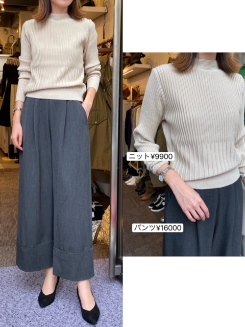 ニット9900円✨パンツ16000円✨ ボトルネックニットとデザインタックパンツ💕 ボトルネックニットは襟が少し高くなっているので、ハイネックが苦手な方でも抵抗無く着ていただけますよ✨ そしてとってもお洒落なこちらのパンツ❣️ ウエスト部分のタックと裾の折り返しがポイントです✨ タイトめなトップスやブラウスなどに合わせて、少しモードな雰囲気で履いていただいても素敵だと思います😍❤️ 2019年11月11日