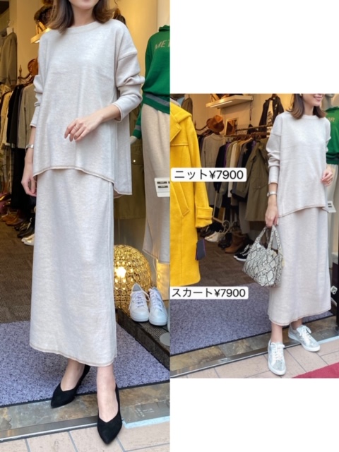 ニット7900円💕スカート7900円💕 お洒落なニットとスカートのご紹介です😍 同素材のニットとロングスカートですので、セットアップとして着ていただくと本当に素敵ですよ😍❤️ お色は写真のベージュ、ブラウン、ブラックの3色です💕 ぜひお試しにいらしてください✨ 2019年11月11日