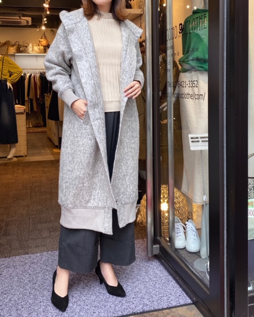 コート15000円💕 お洒落なデザインコートのご紹介です❣️ お袖と裾部分がリブになっているので、カジュアルなお洋服にもとてもよく似合いますよ😍 お色は写真のグレージュ、ネイビー、ブラックです💕 ぜひお試しにいらしてくださいね😊 コート¥15000 2019年11月11日