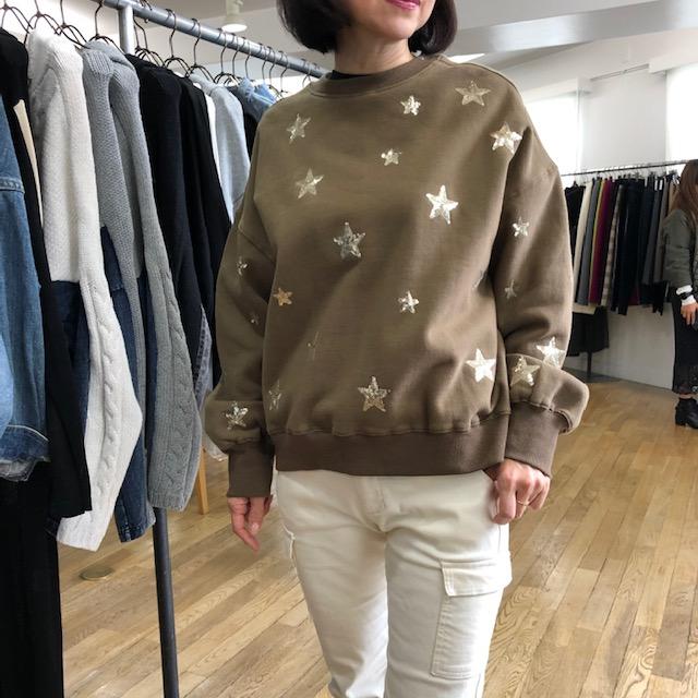 キラキラ星トップス⭐️⭐️⭐️ こちらは裏ボアの暖かプルオーバー です💕 薄いカーキがかった色味がお洒落な一枚😍 他にも星ものが沢山入荷したので、星⭐️好きな方ぜひ見にいらしてくださいねーーー 2019年11月15日