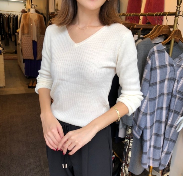 Vネックニット💕 やっぱり使える上質ニットはいかがでしょうか? ウール100%でチクチクしない⭐️⭐️⭐️ サラッとした着心地が堪りません 白に黒のボーダーもございます💕 ニット 9800円 ウール100% 2019年11月15日