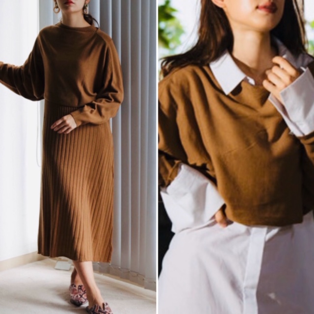 ニットセットアップワンピース💕 大人気のセットアップワンピースの追加が上がってきました💕 キャメル、ブラック、グリーンの3カラーとなっております😃 サラッとした薄手のニットワンピースなので、春先まで大活躍しそうです💕 ニットワンピース 9800円 2019年11月16日