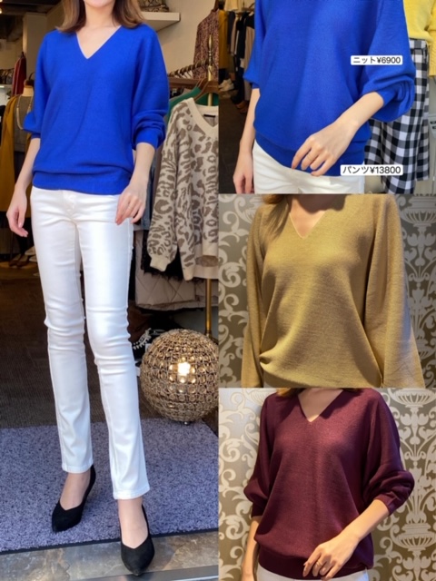 ニット6900円✨ 着心地抜群でカラーバリエーションも豊富なニットのご紹介です✨ デコルテを綺麗に見せてくれるVネックニット、肌触りも良く、とても着やすいですよ😊 おうちで手洗い出来るのも嬉しいポイントですね💕 2019年11月20日