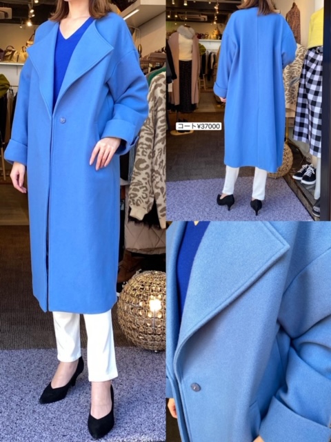 コート37000円💕 とっても華やかで綺麗なブルーのコートはいかがでしょうか☺️💕 カラーは落ち着いたブルーですので、幅広い年代の方に着ていただけるかと思います。 こちら、スタッフの間でも大人気です😆✨ 気になる方は、ぜひご試着にいらしてくださいね💙😊 お待ちしております✨ 2019年11月20日