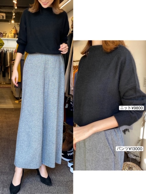 ニット9800円💕パンツ13000円💕 ふわふわ暖かいアンゴラ混ニットとワイドパンツのご紹介です🙋🏼♀️💕 とっても柔らかい風合いのニットは、ボトルネックで首元も暖かく、ハイネックが苦手な方でも首元の締め付けを気にせず着ていただけるかと思います✨ そしてこちらのパンツは、体型を拾わず脚を長く綺麗に見せてくれますよ😊 ぜひご試着にいらして下さいね💕 2019年11月20日