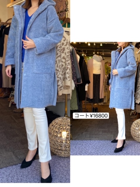 コート16800円💕 とっても暖かいコートが入荷しております💕 前はファスナーで、フードもついているので防寒もバッチリです✨ 落ち着いたブルーですので、幅広い年代の方に着ていただけるかと思います✨❄️ 他にもアウターが沢山入荷しておりますので、ぜひご覧にいらしてくださいませ😊 2019年11月20日