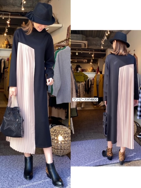 ワンピース14800円💕 とってもお洒落なデザインワンピースが入荷しております😍✨ プリーツ切り替えとバイカラーで、なかなかないデザインですよ☺️💕 ぜひお試しにいらして下さいませ🤗✨ 2019年11月21日