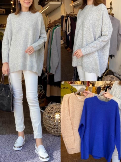 ニット11000円✨ シンプルなクルーネックニットが入荷しています✨ 少し長めの丈感で、とっても着まわししやすいアイテムですよ☺️ カラーはグレー、ベージュ、ブルーの三色です💕 ニット¥11000 2019年11月24日