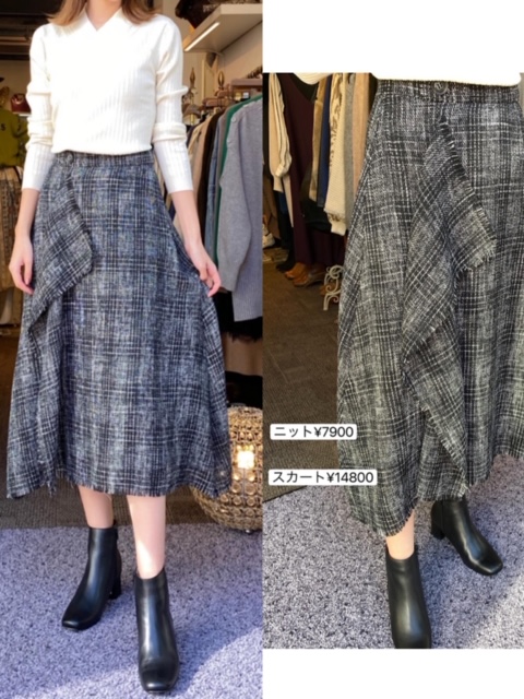 ニット7900円✨スカート14800円✨ 上品なVネックニットとスカートのご紹介です💕 ニットは小さめのVネックですので、首元が開きすぎず上品に着ていただけます✨ スカートは巻きスカート風でおしゃれですよ☺️❤️ ニット¥7900 スカート¥14800 2019年11月24日