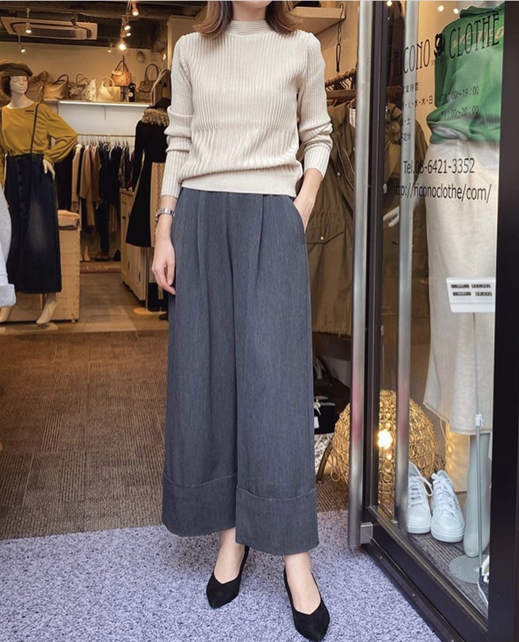 ストレッチワイドパンツ 16000円💕 ストレッチ素材のデザインワイドパンツが再入荷致しました💕 裾の折り返しがとてもお洒落な一枚⭐️ お色違いはライトベージュがございます😍 春先まで大活躍しますよぉ〜 2019年11月24日