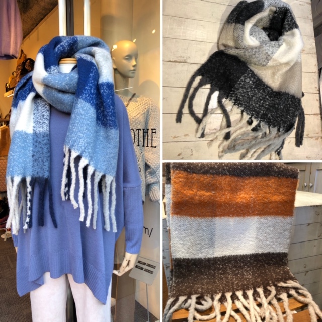 新作ストール💕 5900円 ブークレ素材の暖かい大判ストールが入荷しました💕😃 ブルー、ブラック、オレンジの3カラーとなっております🎄🥰 コートの襟元に巻いたり、カーディガンみたいにもお使い頂けて、活用度大です💕 他にも沢山ストールがございますので、ぜひ見にいらしてくださいませーーー💕 2019年12月15日
