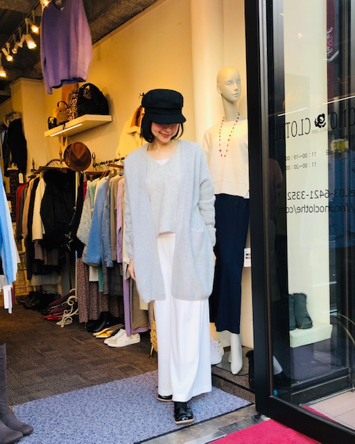オフホワイト❎ライトグレー 今日は冬らしく白とグレー、アクセントにブラックを入れたコーディネートにしてみました💕 新しく入荷のロングガーデンは超軽量で極上の肌触りです⭐️⭐️⭐️ 一年頑張った自分にご褒美はいかがでしょうか?💕 オフ白、ライトグレー、チャコールグレー、ブラックの4カラーでやっております ニットカーディガン 26000円💕 ワイドパンツ 9800円 2019年12月15日